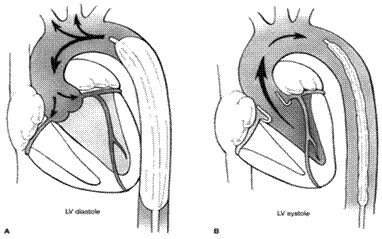 心脏舒张末期主动脉瓣即将开放立即排气,降低心脏做功(负荷),降低心肌的氧消耗,增加心脏输出量。 |