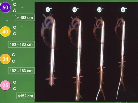 上图显示的是 导管的四种型号,一般常用的是40号,适用于1.63~1 .83米 的人群。
