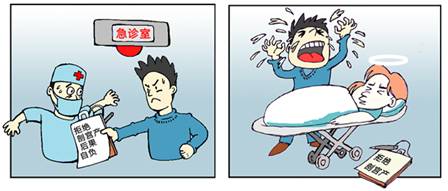 医院之所以要求患者签字,认为患者不签字就不能实施手术,源于《医疗机构管理条例》三十三条是这样规定的:医疗机构实行手术,特殊检查或特殊治疗时,必须征得患者同意,并应当取得家属或利害关系人的同意。无法取得患者意见时,应当取得家属或关系人同意,并签字。无法取得患者意见又无家属或关系人在场,或者遇到其他特别情况时,主治医师应当提出医疗处置方案,在取得医疗机构负责人或被受权负责人员的批准后实施。如何理解第三十三条?特别是如何理解第三十三条最后一段中的“或者遇到其他特殊情况”?而《职业医师法》第二十四条规定:对极危患者医师应当采取急救措施进行诊治,不得拒绝急救处置。